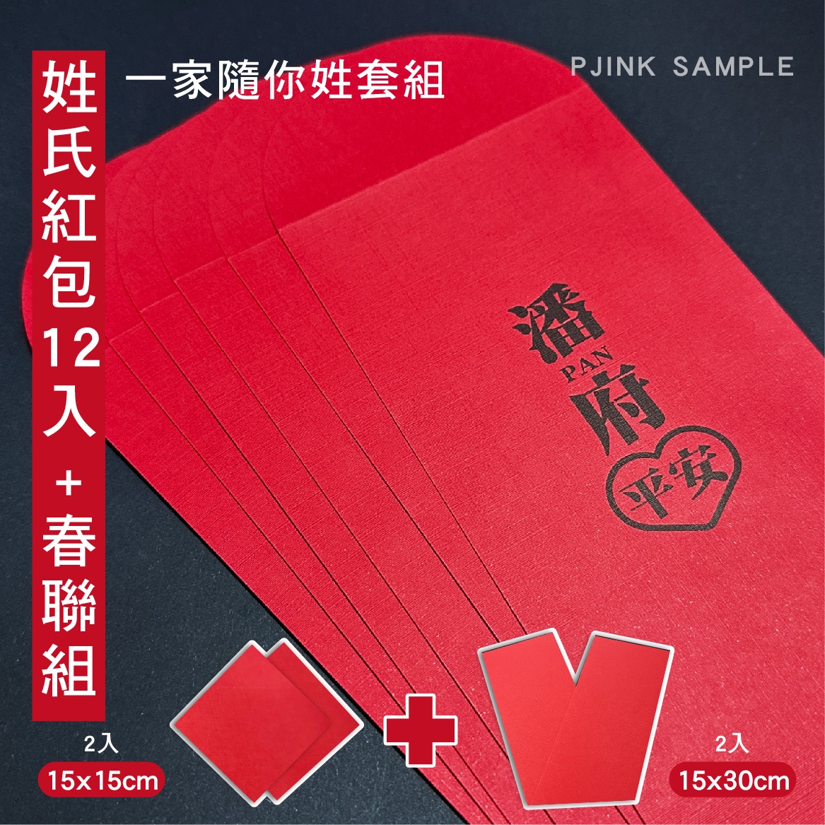 1.說明:紅包代為公版姓氏紅包,一個姓氏最低客製量為 一個套組 (12入)各1