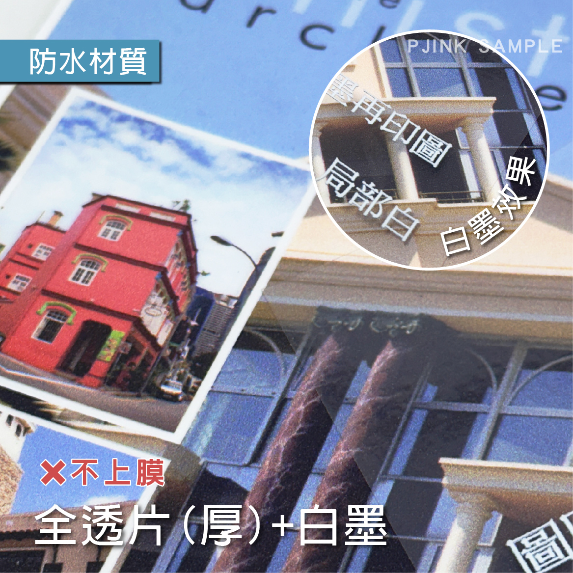 在全透明片材上,透過白墨作為襯底或部分印製,能有效